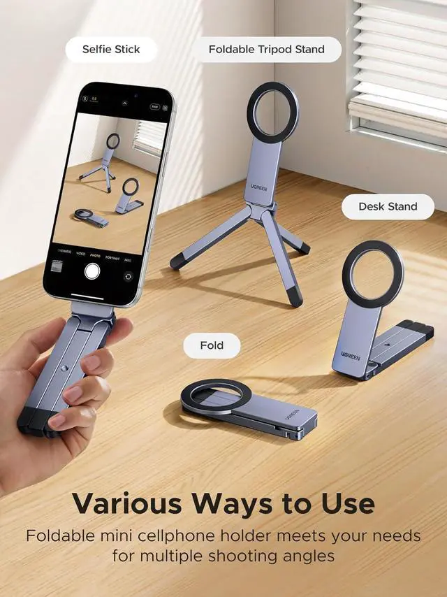 Modes: This phone tripod for magsafe adapts to any shooting scenario from desktop setups to outdoor adventures. Switch modes in seconds for professional photos and videos wherever you goUniversal