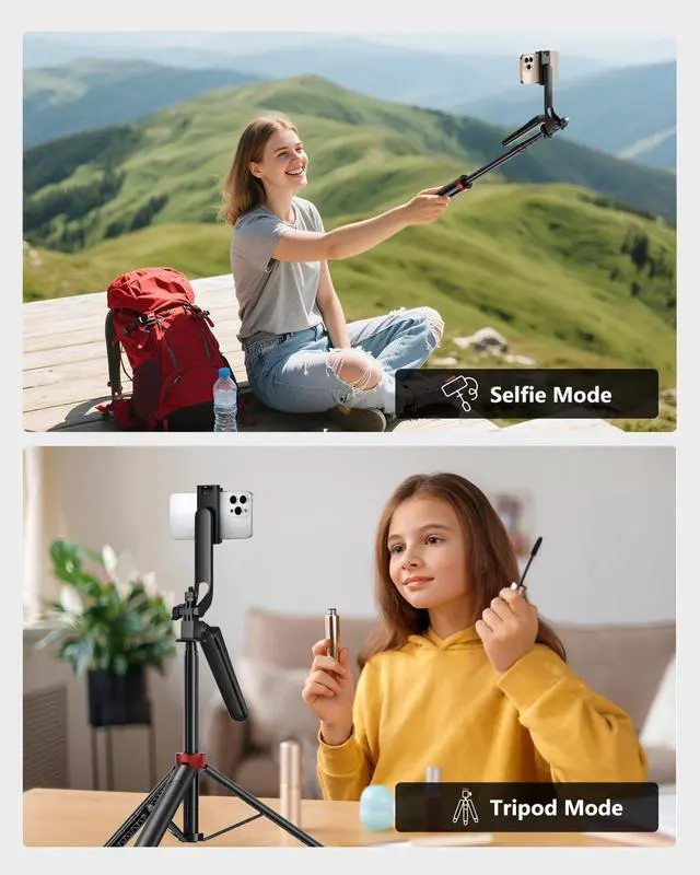 Lightweight & Telescopic Design: Weighing just 0.8 lbs and folding down to a compact 11 inches this selfie stick tripod is built for life on the go. Extend it smoothly up to 72 inches to achieve high-angle shots or wide group photosno twisting or locking needed just pull and set.