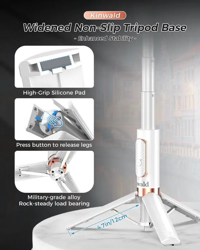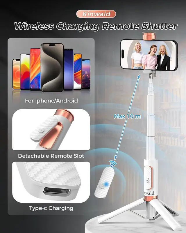 Bluetooth Remote for Hands-Free Shooting Includes a detachable Bluetooth remote that lets you capture photos and videos from a distance. Great for solo shots group photos and content creators who want more freedom. Compatible with Most Smartphones Works with most iPhone and Android smartphones. For best results ensure your phone is properly centered and securely placed in the holder before use.