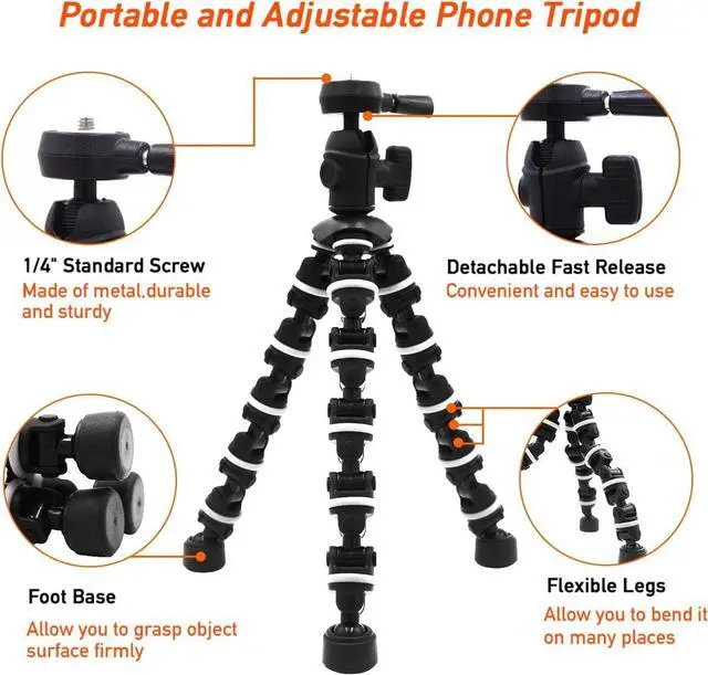 Flexible Legs: This flexible 360 tripod allow you to bend it to many places you can have fun if you wrap the legs around branches poles or anywhere you can imagine. The foot base can grasp most surfaces firmNon-Slip