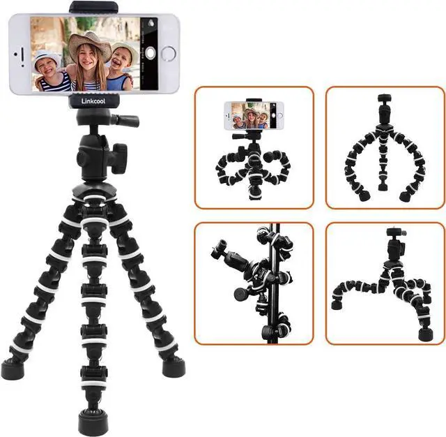 Wide Compatibility: The smartphone tripod mount automatically adjusts to hold any phone size. So it is good for a cell phone tripod The perfect iPhone Tripod works for iPhone 13 13pro 12 12pro 11 11pro X XS XR 8 8 Plus 7 7 Plus 6 6 Plus 5 4 Galaxy S10 S9 S9+ S8 S8+ S7 S7 Edge S6 Note 7 and use as other smartphone cellphone tripod. With the universal clip it also works as camera tripod DSLR tripod Gopro tripod.
