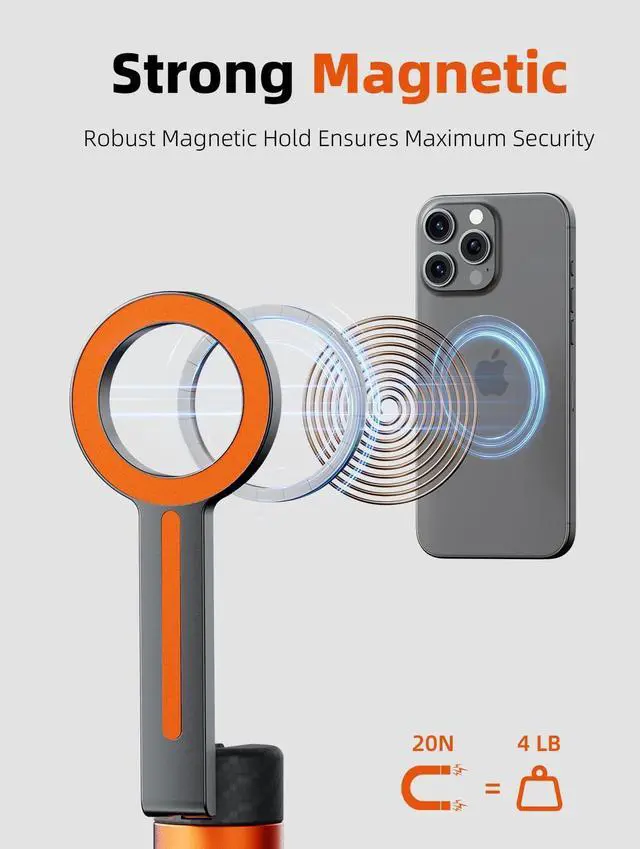 Magsafe: Featuring a 20N magnetic clip this magnetic tripod is only compatible with iPhone 16/15/14/13/12 Pro Max Mini and official Magsafe cases as well as other magnetic phone cases.