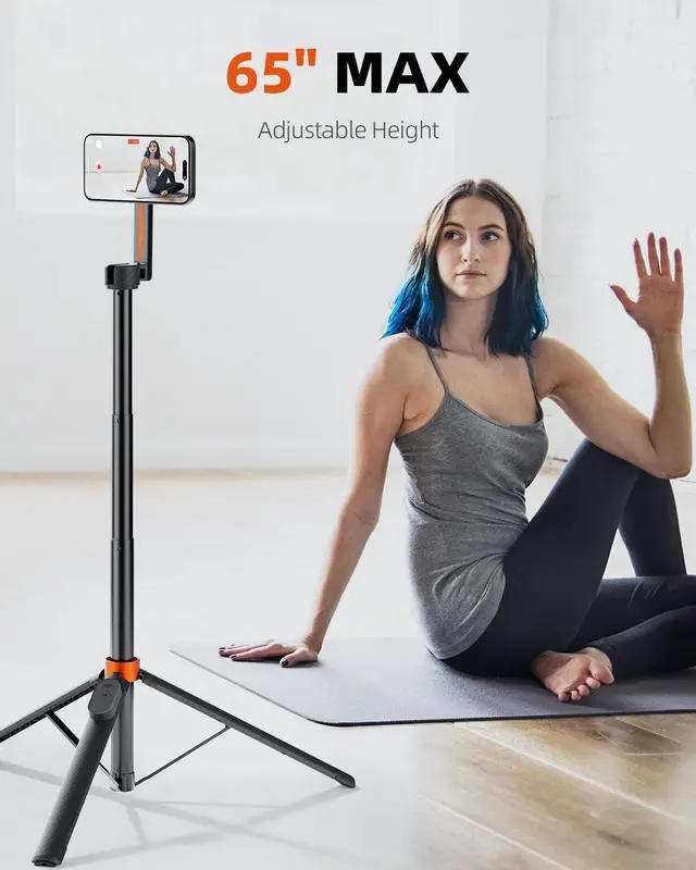 2-in-1 Selfie Stick Tripod: Extends up to 65 inches high and folds down to just 14 inches. Weighing only 0.8 pounds its compact and easy to carry in your bag. Perfect for selfies vlogging live streaming or group photos offering versatile shooting heights for any occasionWireless