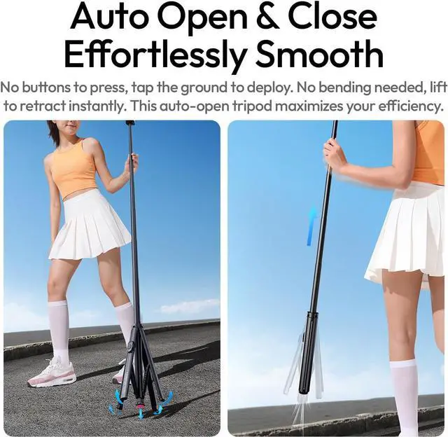 ???????????????? &?????????????????????????????????????????????????? No more struggling with complicated locks or bending over! Touch the base to the ground for auto-expansion pull up gently to retract quickly. Perfect for busy travelers and creatorsshoot your perfect shot in seconds whether on a road trip hike or daily capture.