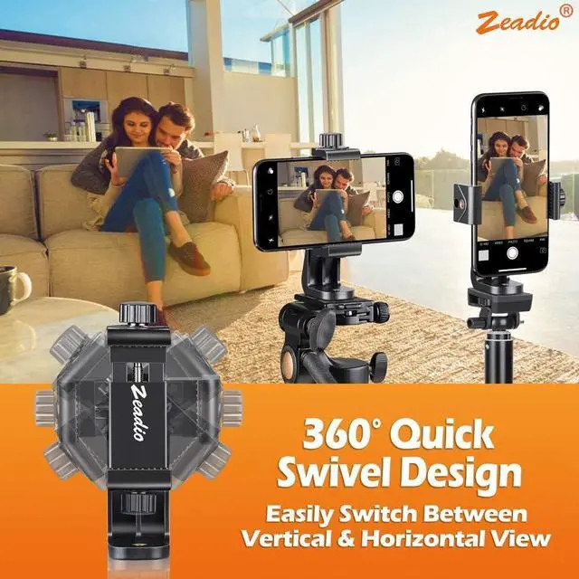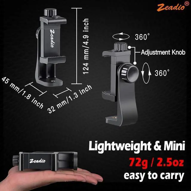 Can hold ALL Smartphone or Phablet with width between 58mm to 105mm. Full 360-degree rotation function for the perfect viewing angle. Attached to any tripod monopod stabilizer or other filming device with a standard 1/4 inch thread interface. With Wireless Remote Shutter for All iPhone and Android Smartphones. Helps you filming steady video for Facebook Live Periscope and other live streaming platforms.