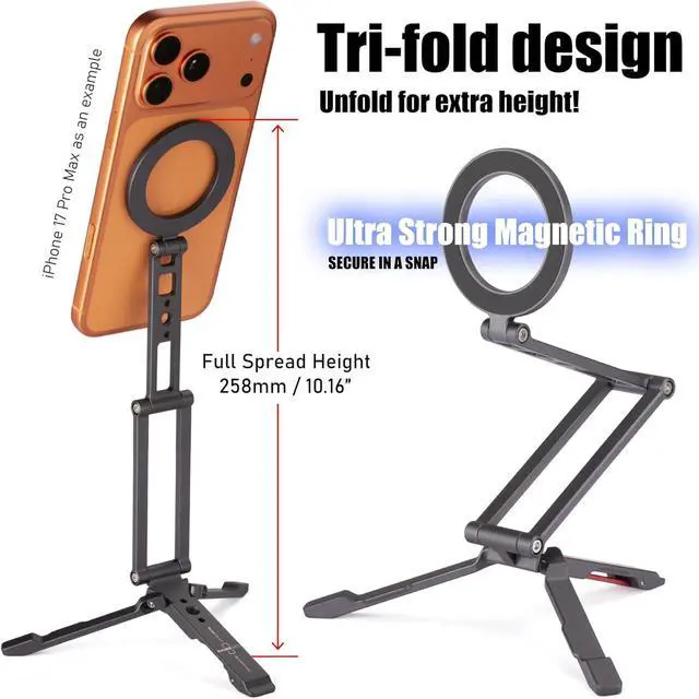 2-in-1 Versatility: Doubles as a stable tripod (for content creation) and an adjustable stand (for watching videos working or video meetings).