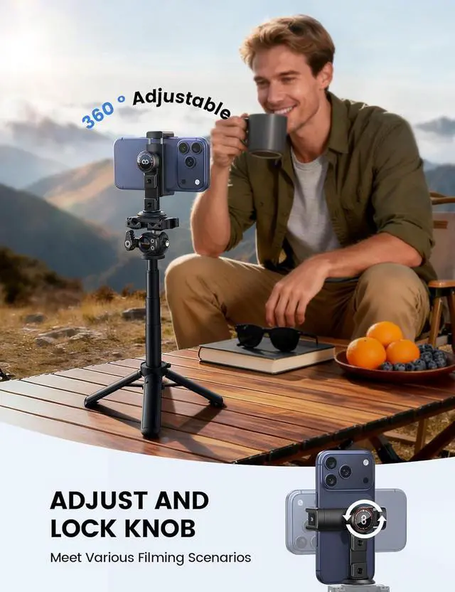 Rotation & Safety Lock: The cell phone holder includes a locking knob that controls two functions at once. It enables smooth switching between landscape and portrait modes to meet various filming scenarios. Users can tighten the knob to lock both the angle and grip simultaneously ensuring full stability during operation.