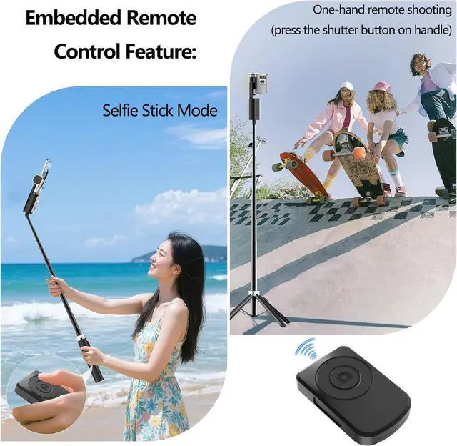 360° Intelligent AI Face TrackingOur Auto Face Tracking Tripod with 360° Rotation Stand delivers app-free precision. As an essential selfie stick for iPhone it features advanced 360° automatic face trackingno app required. Control is intuitive with 4 distinct hand gestures: wave OK to start tracking show your palm to stop and 2 additional gestures for seamless operation. It keeps you centered in the frame within a 5-meter range making it perfect for creators essentials: professional video recording live streaming and vlog kits. Selfie Stick Tripod with RemoteThis selfie stick tripod with remote comes with an integrated wireless Bluetooth remote that clips securely onto the pole. For first-time use simply remove the battery insulator and connect via Bluetooth to get started. It supports essential recording functions like starting and stopping video capture providing convenient remote operation without complicated setup. Optional Clip-on LightThe optional mini LED light features adjustable brightness levels (3 levels per color mode) to meet your specific lighting needs. Simply long-press the power button to cycle through brightness settings providing customized lighting for selfies videos live streams or vlogs. Its compact clip-on design allows for flexible positioning ensuring you always capture well-lit professional-quality content. Flexible Shots Effortless ReachThis adjustable phone tripod stand lets you capture the perfect shot from any perspective with easy angle control that fits all 24 inch screen devices (iPhone and Android). Designed for life on the go it folds down to a compact 12.3 inches for storage and extends to a full 60 inches in height. The seamless all-in-one structure is not only sleek but ultra-lightweightslip it into your bag and take it anywhere ready to set up in seconds.