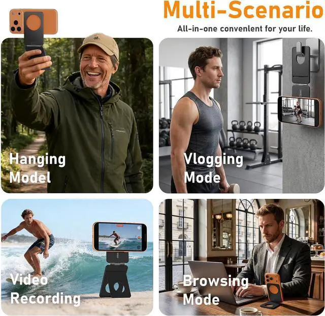 Reliable: The aluminum alloy magnetic phone stand has a smooth touch and is resistant to daily dirt and scratches. The aluminum alloy material is waterproof and sun-proof and has a longer service life. It is more convenient for you to use this content creator essentials magnetic tripod at home in the office on the beach in the gym or when traveling. This is an excellent iPhone accessories for content creator essentials