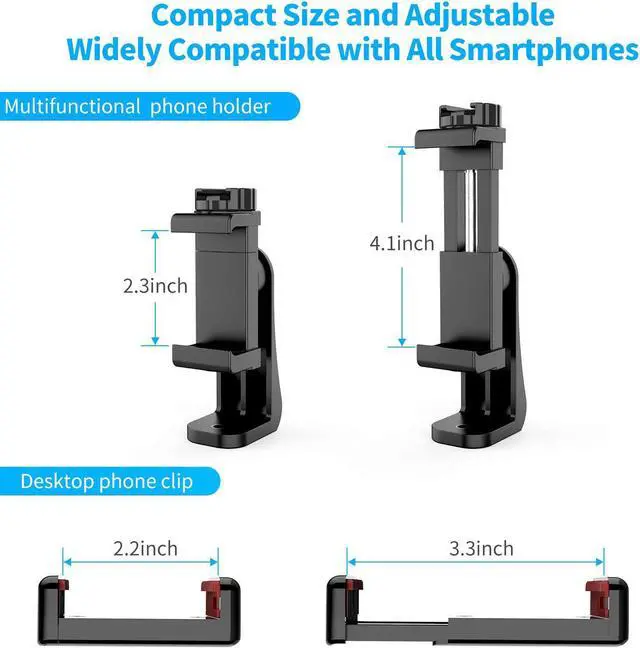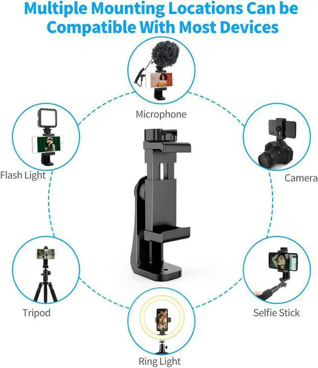 The smartphone stand clamp can be used as a desktop or connection to the Tripods Monopods Selfie Sticks!