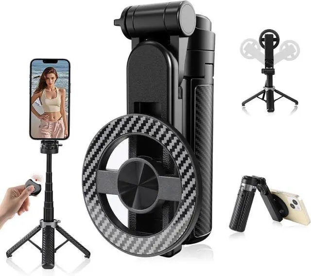 4 in 1 Multifunctional Magnetic Selfie StickOur mini selfie stick has four modes: Selfie Stick Mode Tripod Mode Hand Grip Mode Tabletop Mode. It is lightweight foldable and conveniently fits into your pocket or bag. Whether you are traveling vlogging or documenting daily experiences this compact selfie stick serves as an ideal companion for capturing spontaneous moments and stable video footage360° Rotation with Adjustable AnglesOur magnetic selfie stick for phone achieve the perfect shot every time with full 360° rotational capability and adjustable tilt. Whether capturing images in horizontal or vertical orientation this selfie stick tripod adapts to your needs for photography video conferencing or live streamingEasy to UseThis 4 in 1 selfie stick magnetic experience instant setup with the integrated magnetic mount which securely attaches your phone in seconds. The magnetic connection provides a firm grip while allowing for smooth angle adjustmentsideal for effortless selfies hands-free video recording or content creation from multiple perspectivesRemote ControlOur Multifunctional selfie stick maintain full control over your shots which can be easily detached for hands-free operation. Perfect for group photos and long-distance shooting this feature transforms your portable selfie stick into a professional-grade photography tool at any time and locationDurable Stable Tripod BaseConstructed with a durable 16-inch telescopic aluminum pole and a retractable four-leg tripod base this selfie stick tripod offers both extended reach and exceptional stability