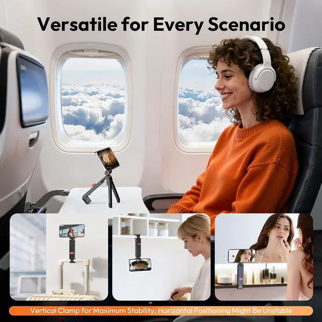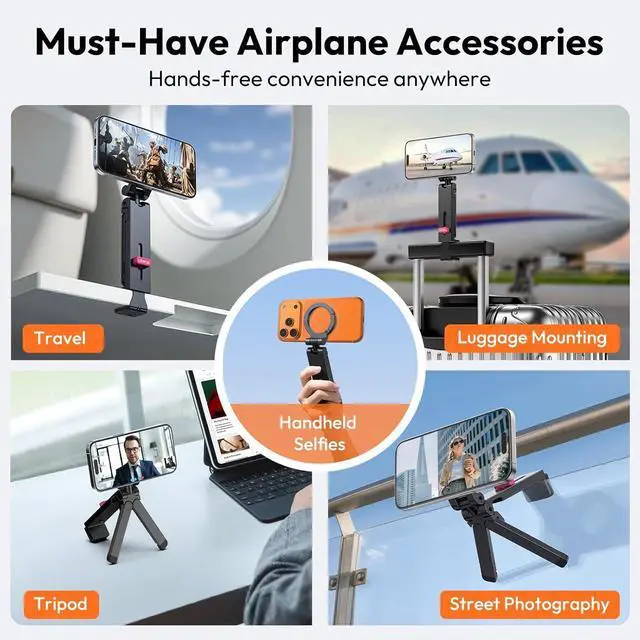 MA88 Magnetic Phone Tripod Mount for MagSafe iPhone 17-12 Series Strongest Magnet Handsfree Airplane Phone Holder for Woman Man 360° Rotation Long Flight Travel Essentials for Seat Tray Table