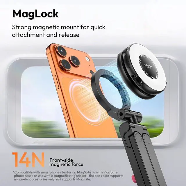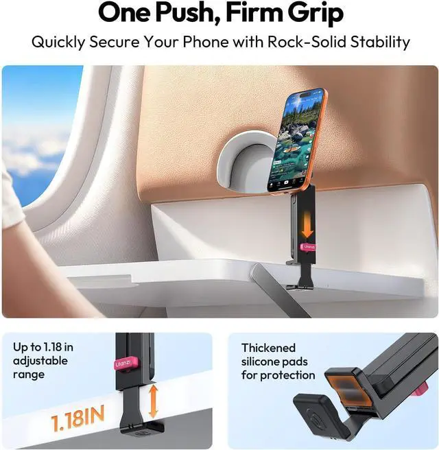 ULANZI MA88 Magnetic Phone Tripod Mount for MagSafe iPhone 17-12 Series Strongest Magnet Handsfree Airplane Phone Holder for Woman Man 360° Rotation Long Flight Travel Essentials for Seat Tray Table