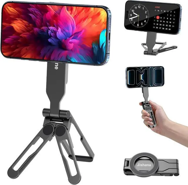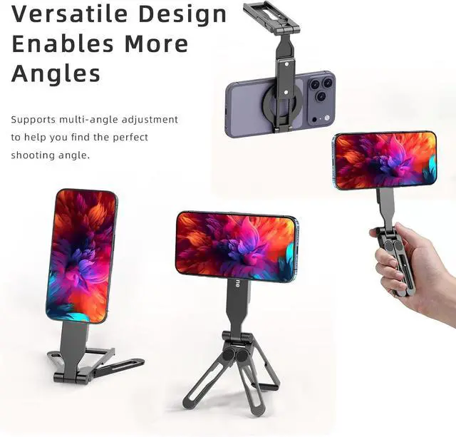 Perfectly Compatible Magnetic TripodThis magnetic tripod is fully compatible with the iPhone 16/15/14/13/12 Pro Max series as well as the official magnetic protective cases. The included magnetic metal ring expands the compatibility for iPhone 11 and earlier models and also includes a magnetic stand for iPhone 16se a stand for iPad mini a stand for Android phones and a non-magnetic protective case providing a safe and stable usage experience for all your devices. Adjustable and durable This adjustable magnetic tripod for iPhone supports multi-angle adjustment helping you find the best shooting angle. Made of high-quality zinc alloy it is shockproof and long-lasting.