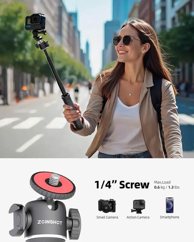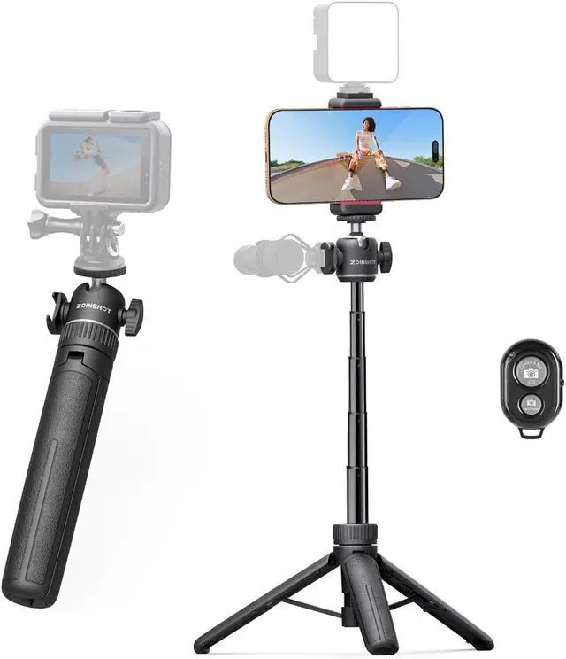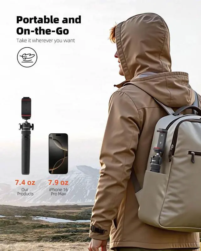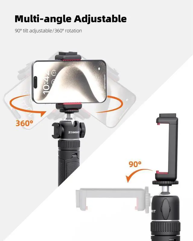 Versatile Design: Every travel content creator depends on sturdy reliable equipment. The extendable tripod transforms seamlessly from a handheld selfie stick to a stable phone tripod stand. Boost your production value instantly with built-in cold shoe mounts (on the phone clip and ball head) perfect for attaching accessories like LED lights or microphones360°