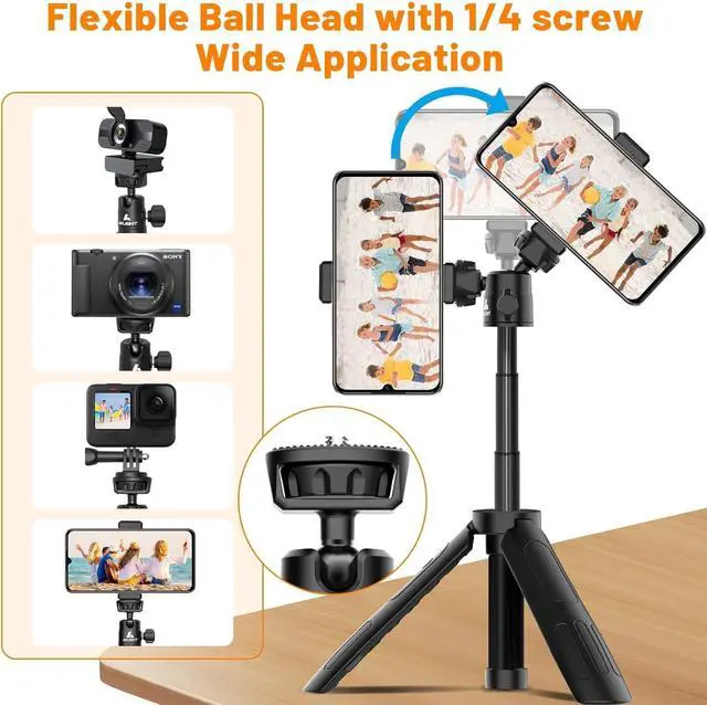 Multi-Device Compatibility & Quick Switching: Designed for smartphones action cameras and lightweight cameras. Dual 1/4 screws allow fast device switching without extra adaptersperfect for creators shooting Instagram TikTok and YouTube content.