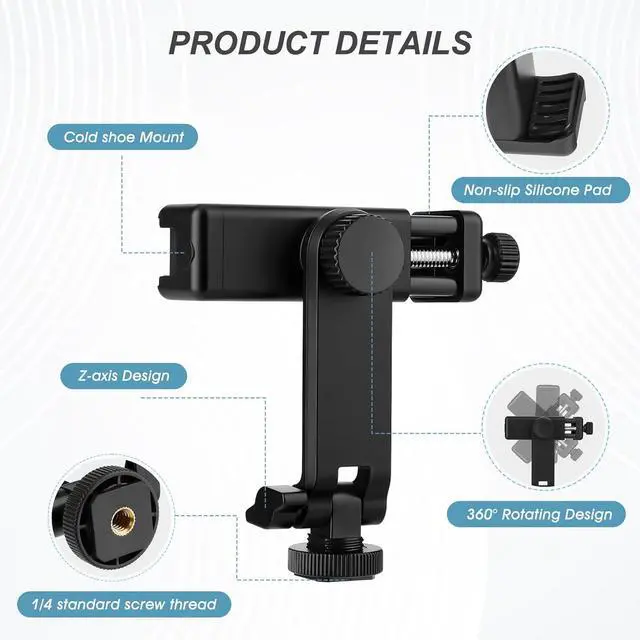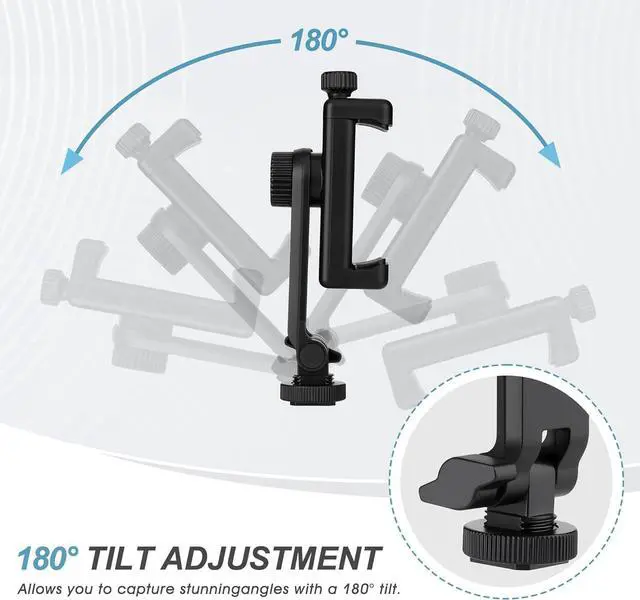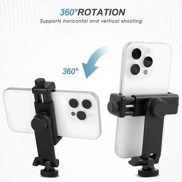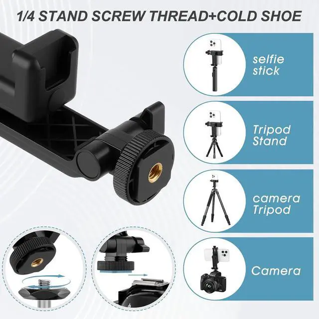 VERTICAL OR HORIZONTAL DESIGN: It can be 360° rotation adjustableShooting in various angles for landscape or portrait requirements. And easy to hold or release the phone by operating the knob. COLD SHOE MOUNT DESIGN which allows to install microphones or photographic lights and other equipment.