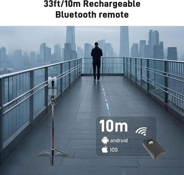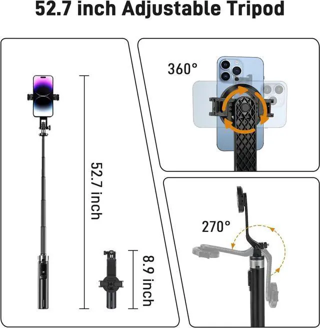 Rotation: This selfie stick for iphone features a 270° vertical tilt and 360° horizontal rotation giving you full flexibility to capture stunning shots from any angle. Whether youre filming live streaming or taking selfies enjoy effortless control to find the perfect perspectiveDetachable