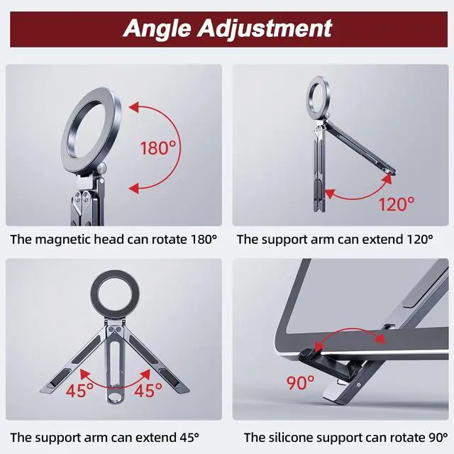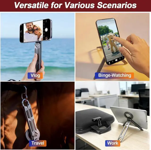 Stand Mode: This magnetic phone tripod doubles as a stable desktop holder and a convenient handheld selfie stick. Its 180° rotating magnetic head lets you effortlessly find the perfect angle for videos chats or capturing lifes best momentsPortable