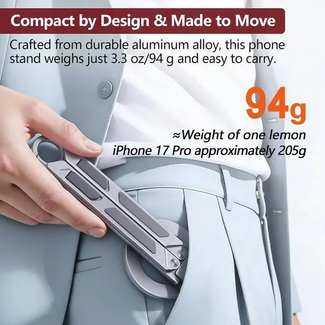 Strong Magnet: This phone stand features a powerful N52 magnet that securely attaches your phone in just 1 secondno clips clamps or adjustments needed. Its reliable hold frees you to focus fully on capturing the perfect shotHandheld &