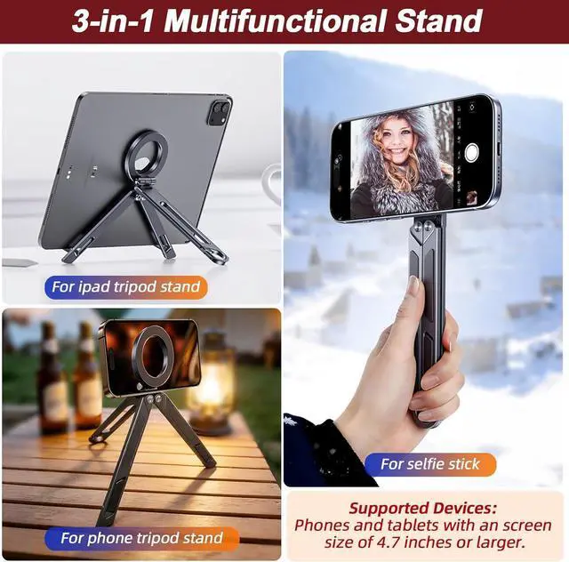 Magnetic Tripod Stand: This versatile iphone tripod stand securely holds your magnetic-compatible phone or ipad with silicone supports to enhance iPads extra stable. Perfect for video calls live streaming and moreready for any creative scenarioSuper