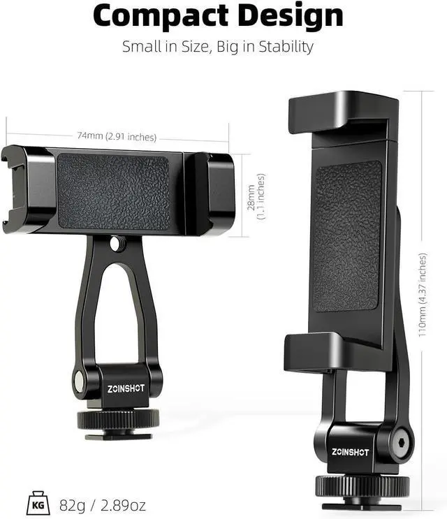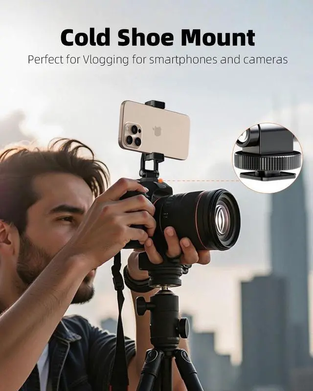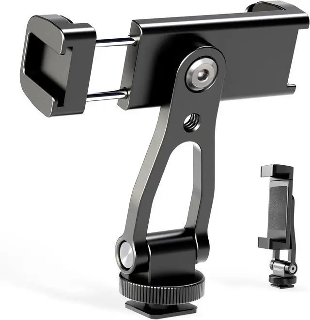 Dual Cold Shoe System:?? Features dual reinforced cold shoes at both ends of this?? phone tripod mount?? enabling simultaneous attachment of accessories like microphones or LED lights. The built-in?? tripod mount adapter?? seamlessly connects to cameras?? gimbals?? or?? tripod for cell phone?? setupsTwo 1/4