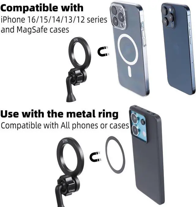 **Wide Compatibility**: Directly compatible with iPhone 16 15 14 13 12 series and come with metal ring for you to use with android phones.