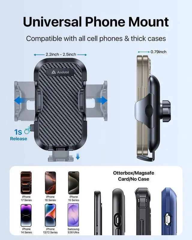 Tips: Not compatible with PopSockets phone cases)Andobil CareAt Andobil we use only premium-grade materials to ensure top-notch quality. Thats why we confidently offer an industry-leading 3-year care. Your satisfaction is our top priority. We believe you will appreciate the exceptional performance and durability of our car mount making it the perfect choice for your driving needs.