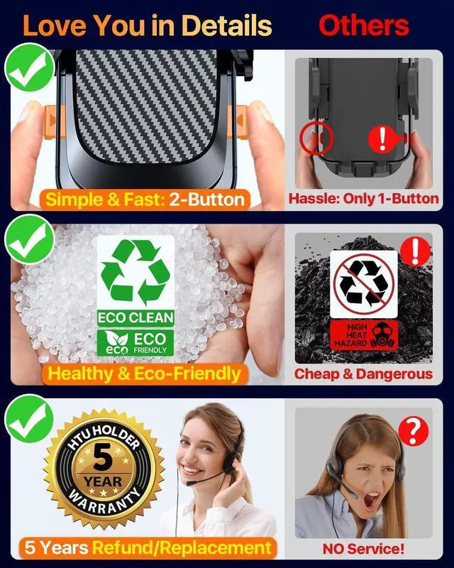 2026 Ultimate Best = True Military-Grade + World-Class Safety CertificationsBuilt to authentic Military-Grade standards and validated by global safety agencies this HTU car mount reflects 15 years of elite engineering. Certified Military-Grade (No. GZMR250702297501) RoHS (No. LINK-T2211264R) and CP65 (No. ATC210427-14141E)delivering verified shock resistance material safety and long-term durability for real-world driving. Multi-Functional 5-in-1 One Mount Every Scenario CoveredWindshield dashboard air vent desktop and cable managementall in one system. Whether you drive a car truck SUV pickup Jeep boat or even use it at your desk or home gym it adapts instantly without extra accessories.