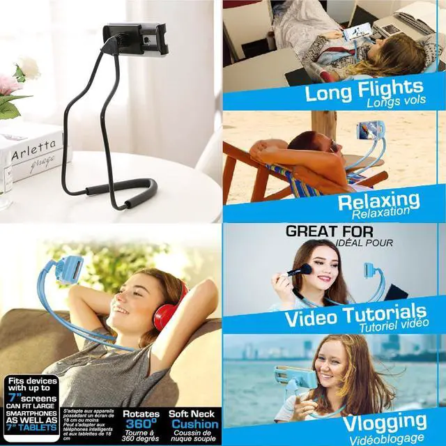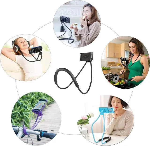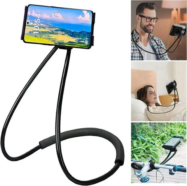 Lazy people hang neck mobile phone stand can be bent arbitrarily suitable for different sizes of mobile phone between 4.7 ''- 6.7 ''. such as iPhone 11 Pro /Xs /Max/ 8/7/6 Switch Google Nexus Kindle Galaxy S10 /S10+/S9 /S9+/S8 /S8+. Please kindly remind that it Only suitable for phones with a case thickness of less than 0.8 inches not suitable for phones with a case thickness of more than 0.8 inchesYou can use neck cell phone holder wherever you want? Used on the table the bed the floor the car hands neck and other parts can be lightly put stability very practical smart phone holderThis Lazy cell phone holder is easy to bend and because of the 360 degree rotating design neck cellphone can be easily adjusted to meet your different visual needsCell phone holder flexible gooseneck arm and 360-degree rotation provide optimal viewing angles while the weighted base ensures stabilityWith neck phone holder minimalist black color this holder seamlessly blends into any environment