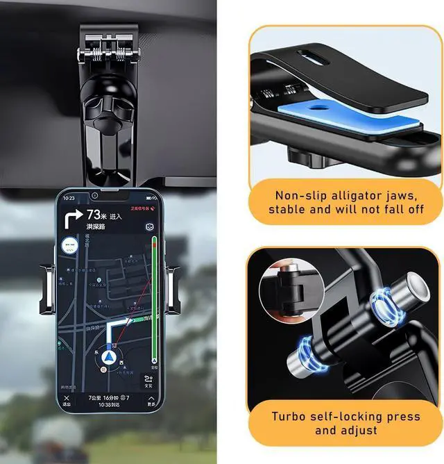 Rotatable Design: The newly upgraded car-mounted mobile phone holder can rotate 360?? degrees and each silver button node can be folded and rotated 180°. Even if the car-mounted mobile phone holder is fixed in one place it can be rotated to all directions. And it can be quickly and easily switched between vertical and horizontal views without blocking your sight.