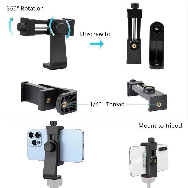 Comptable with: iphone 16/16pro 15 Pro 15 14 14 Plus 13 pro 13 pro max 12 11 X Xs 8 7 Google Pixel HTC... both Andriod and IOSWHAT YOU GET1x phone tripod mount adapter 1x remote shutter 1x hand strap 12 Months warranty. If any questions about this phone holder to tripod please feel free to contact us. How to Connect the