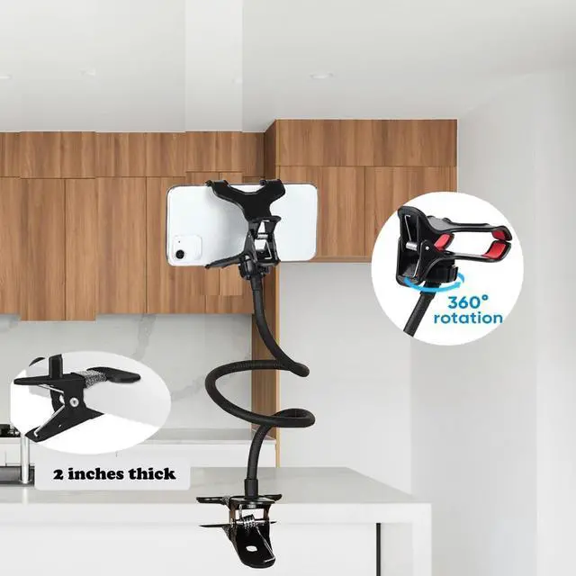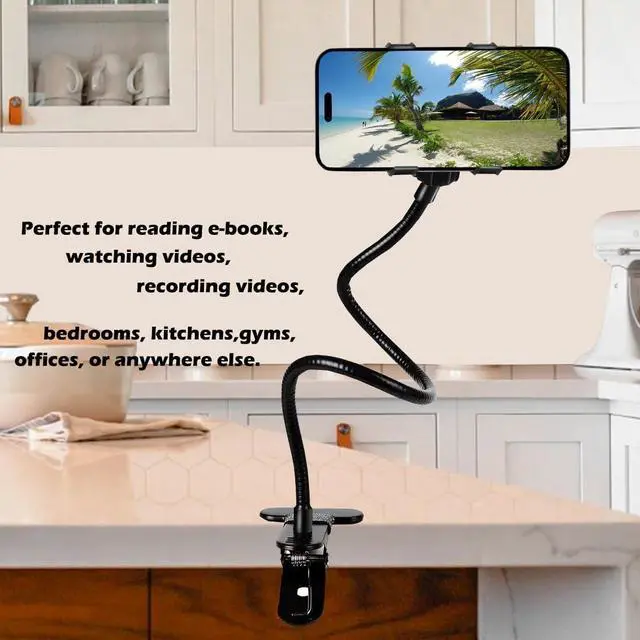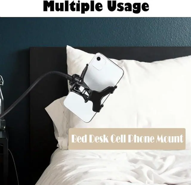 Universal Cell Phone Holder: Gooseneck Clip Phone Holder for Bed Desk Cell Phone Mount Flexible Lazy Long Arm Clamp Headboard Hand Free Overhead Video Recording; You Can Adjust It To Your Best Viewing Angle When YouRe Lying On Your Bed Or Sofa. Heavy Duty and sturdy