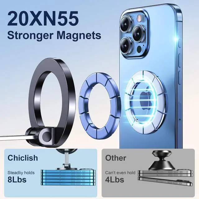 Stronger Magnetic Force: Equipped with 20 new N55 magnets from 2026 the upgraded magnets are 250% stronger than ordinary magnets providing up to 3600gf of magnetic force. It can support the weight of up to 60 smartphones. Proven through 8 000 vibration tests and 10 000 hours of extreme road testing this phone holder securely holds your phone camera even during bumps acceleration sudden stops and sharp turns without the phone falling off. The precise magnetic design ensures strong adhesion while not interfering with phone signals allowing for clear navigation and calls.