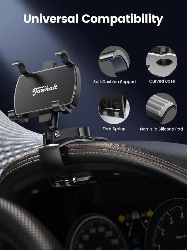 Easy operation: Does not require any assembly can be operated with one hand and is easy to install. Not applicable to phones with heavy protective casesMulti-function: Can be mounted on dashboard rearview mirror sun visor desk without leaving a trace.