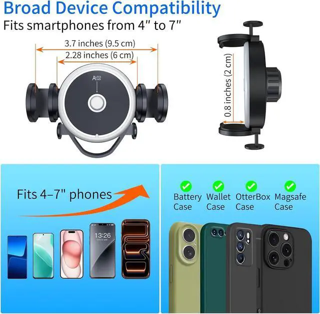 Super Strong Grip Even on Bumpy Roads Equipped with an enhanced spring tension mechanism and adjustable side arms. It holds your phone securely even on rough terrain and bumpy roads preventing slips and vibrations. Works flawlessly with phones of 4-7 inches and some thick phone cases. Tool-Free 3-Second Installation & Repositionable Install in seconds with no tools or adhesive needed! Simply clip it onto your dashboard tighten the adjustment screw for a firmly secure hold and you're ready to go. The repositionable design allows you to move it anytime without any mess or residue.