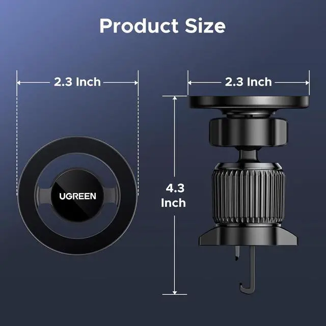 Upgraded Strong Magnet Strength: ugreen magsafe car mount has high-grade N52 magnet with holding force of 2500 g. It holds cell phone absolutely steadily even on bumpiest roadEnhanced