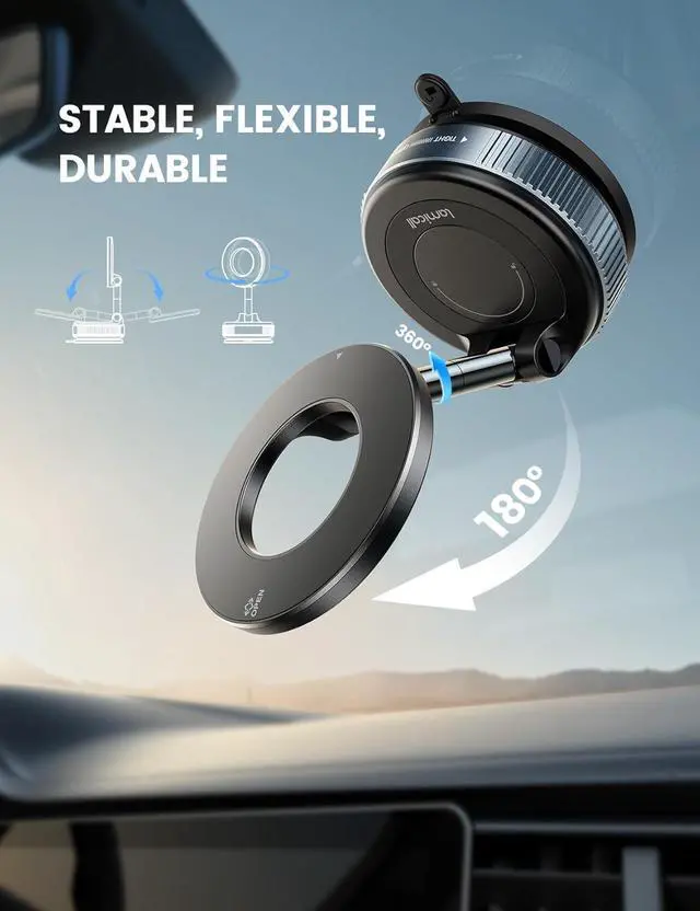 Note: The included metal ring (does not interfere with wireless charging) is required when used with other phone models or non-MagSafe cases. 360° Adjustable Metal Arm Perfect Viewing Angle Crafted with a sturdy aluminum alloy this car phone holder mount offers both flexibility and durability supporting full rotation and tilt adjustment. Whether placed on the windshield dashboard or center console you can easily set the cell phone holder car to eye level.