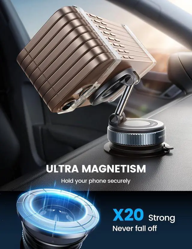 Rock-Solid Stability: Built with heavy-duty plastic and a triple-layer nano gel suction cup this phone holder for your car delivers powerful adhesion that withstands up to 32 kgf of pulling force. Even on sudden brakes sharp turns or bumpy roads it stays firmly in place. Installation is simplejust remove the protective film press onto the base and twist the suction lock clockwise for a secure hold. Next-Gen Magnetic Upgrade for