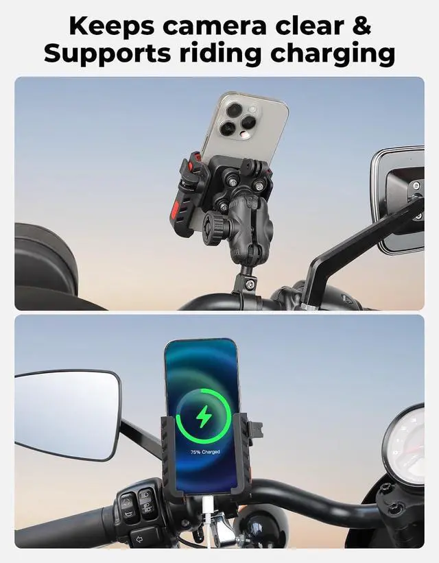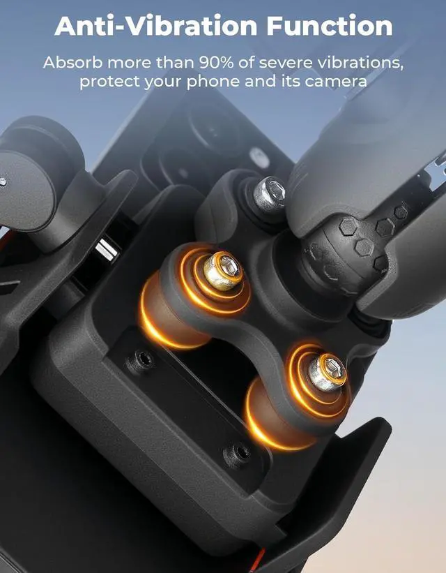 Vibration Damping: The phone mount has 4 anti-shock absorbers that absorb over 90% of vibrations during off-road riding protecting internal phone components like the camera and battery and minimizing the risk of the phone fallingAdjustment