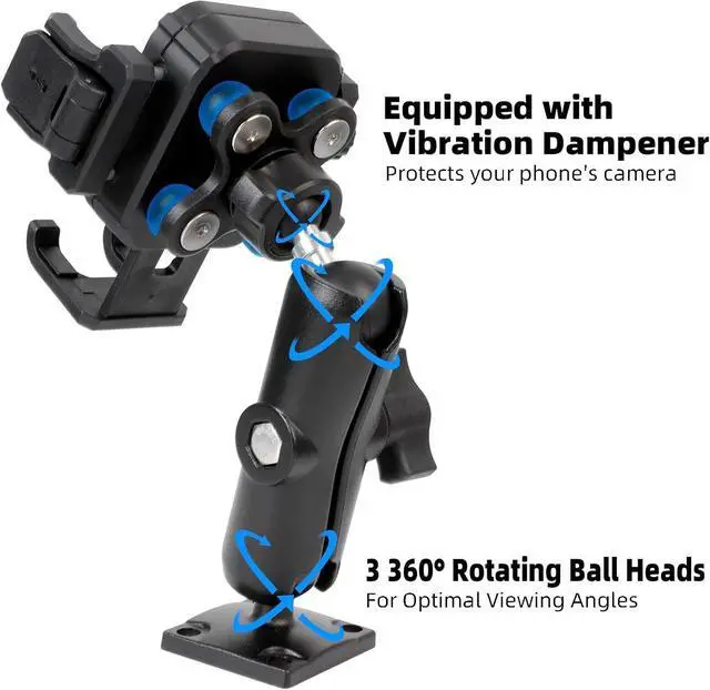 Sturdy & Secure Holding Power: Experience peace of mind with our heavy-duty phone mount. The robust aluminum AMPS base and medium double-socket arm provide a rock-solid foundation. Your device is protected from scratches and slips by rubber pads while the integrated vibration dampener absorbs bumps and shocks for a stable ride.