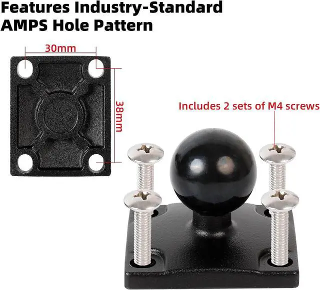 Universal & Easy Installation: Designed for a quick and versatile setup on your car truck boat or UTV. The base features the standard AMPS hole pattern and comes pre-drilled offering flexible mounting options. We include two sets of screws so you're equipped for both direct drilling or attaching to an existing AMPS-compatible system.
