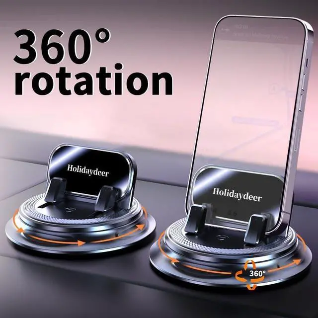 1phone holders for your car Rely on the soft silicone textured back panel and auto-locking design this 360 car phone holder can protect your phone from bumps scratches or flying out during emergency braking hard braking and sharp turns. 2 car phone holder 360° Rotatable tested over 8 000 times for durability offering flexible angles for driving navigation or home use while maintaining long-term stability. of its size for easy portability making it a compact reliable must-have for home car or on-the-go use.