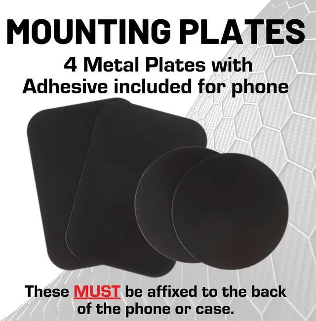 [STRONG MAGNETIC HOLD] The CNC'd Aluminum Frame Houses the Magnet Pad comprised of 6 Rare Earth Neodymium Magnets for a devilish grip on your device: this is DiabloM6. [1-HANDED OPERATION] Our Magnetic Phone holder has no buttons to fumble with. Simply position your phone with the metal plate near the DiabloM6 holder and feel the powerful magnets grab hold of your phone. [20mm BALL MOUNT SYSTEM] This Magnetic Phone Holder is perfectly compatible with any of our standard mounting arms with 20mm connector end. [360-DEGREE ROTATION] This magnetic cell phone mount allows you to use portrait or landscape orientation. Use your iPhone or Android device for hands-free calling and GPS navigation with confidence knowing your phone is secure. [INSTALLATION & DEVICE COMPATIBILITY] 4 metal plates with adhesive are included and 1 MUST be affixed to the back of your phone phone case or small device. May not work with some silicone cases which have non-stick properties. NOT Magsafe compatible.