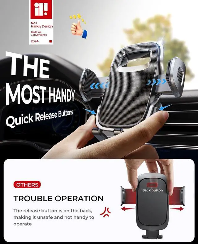 • MRGLAS 2026 Upgraded Phone Holders for Your Car with New Metal Hook Clip Handy Air Vent Cell Phone Car Mount [One Hand Operation] Universal Automobile Cradle for iPhone Android and All Smartphones