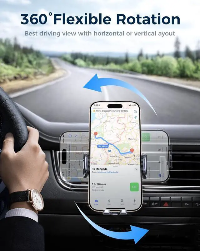 Improved Stability with 4-Lock Protection The MRGLAS car phone holder keeps your phone stable whether you're navigating familiar streets during a family outing or cruising to your next business meeting. The 4-lock protection system compatible with both vertical and horizontal air vents ensures your phone stays securely in place even during sharp turns or on bumpy roads.