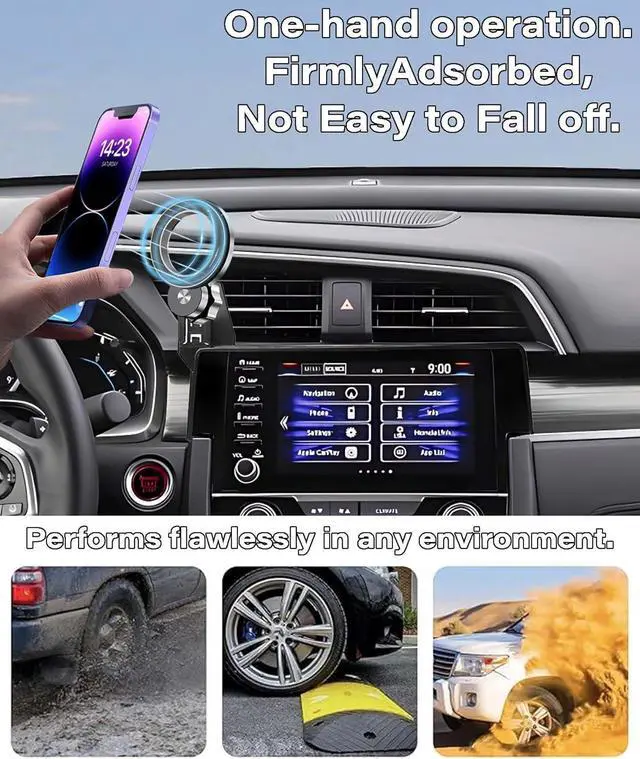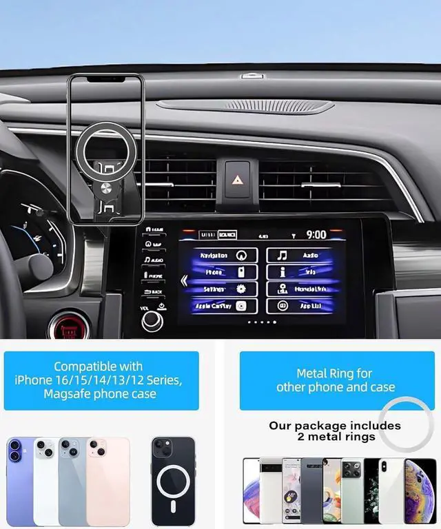MOUNTING: Features strong magnetic attachment system compatible with Magsafe phones and cases plus included metal rings for non-MagSafe devicesONE-HAND