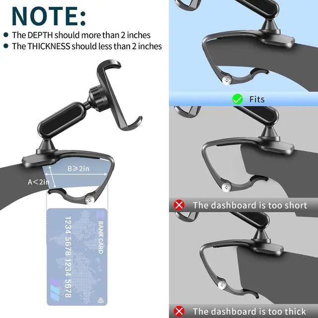 Multifunctional Car Dashboard Phone HolderThis versatile cell phone holder is designed to be used on car dashboards rearview mirrors and sun visors. If you need it for unobstructed navigation while reclined you'll always find an ideal position to mount it. Moreover it's adaptable to numerous other settings such as tables bookshelves kitchens offices and more. 360 Degree