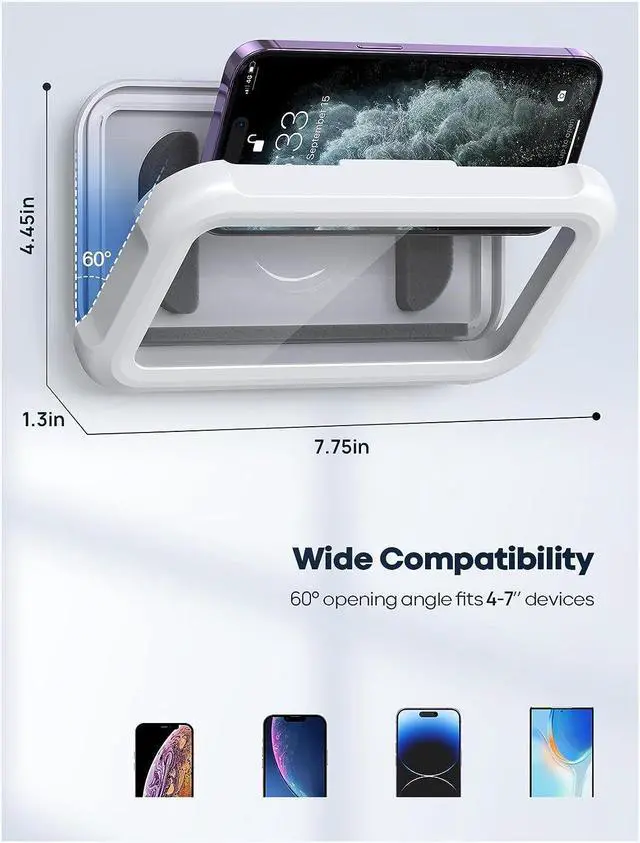 Case Friendly: Designed with the interior sponge this waterproof phone box holder is friendly to thick phone cases ring and socket fits cell phones from 4 to 7 inches compatible with iPhone 17 17 Pro 17 Pro Max 17 Air iPhone 16 16 Pro 16 Pro Max 16 Plus 15 15 Pro 15 Plus 15 Pro Max 14 14 Pro 14 Pro Max 14 Plus 13 13 Pro 13 Pro Max 13 Mini 12 12 Pro 12 Pro Max 12 Mini 11 11 Pro 11 Pro Max XS XS Max XR X 8 SE SE2 android and more devices. This shower phone holder is perfect for anyone who wants to enjoy a relaxing shower.