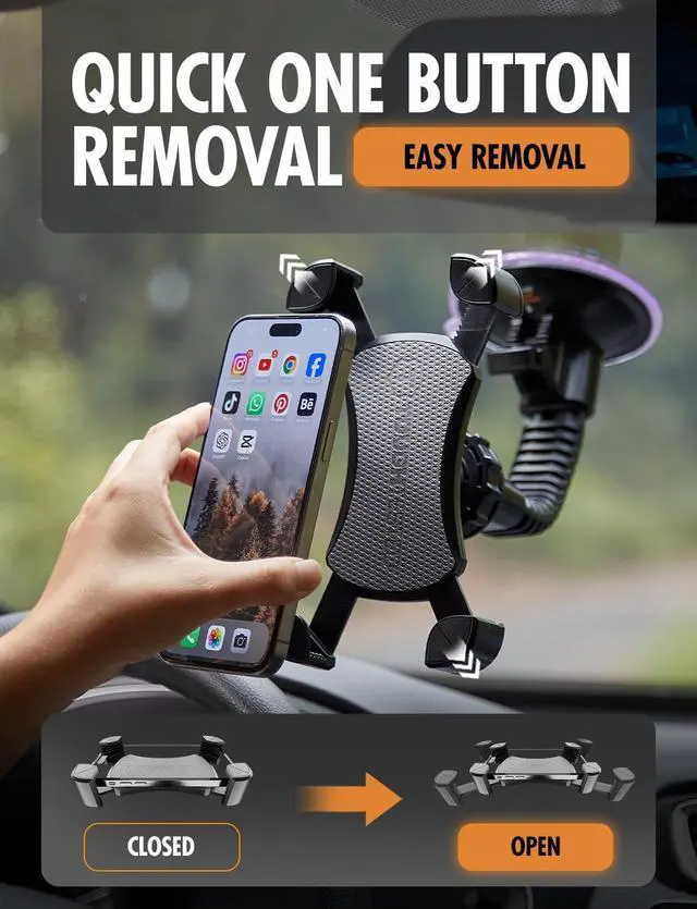 SAFE ONE-HANDED OPERATION: Maximize road focus with professional one-hand operation. The rapid-fire quick-release button lets you dock or remove your phone in secondsperfect for truck drivers and daily commuters.
